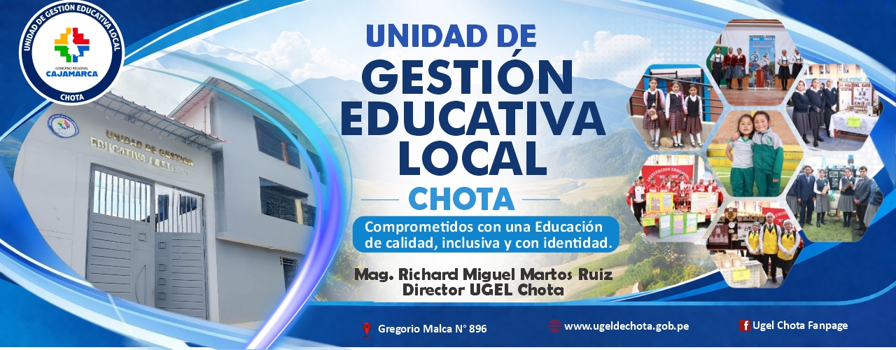 La Unidad de Gestión Educativa Local de Chota, promueve la educación, la cultura, la creatividad, el deporte, la recreación, la ciencia, la tecnología y la investigación de calidad y equidad; coordina con la DRE Cajamarca y convoca la participación de los diferentes actores sociales, recurre al uso de procedimientos pedagógicos actuales con modelos de gestión eficientes y descentralizados.