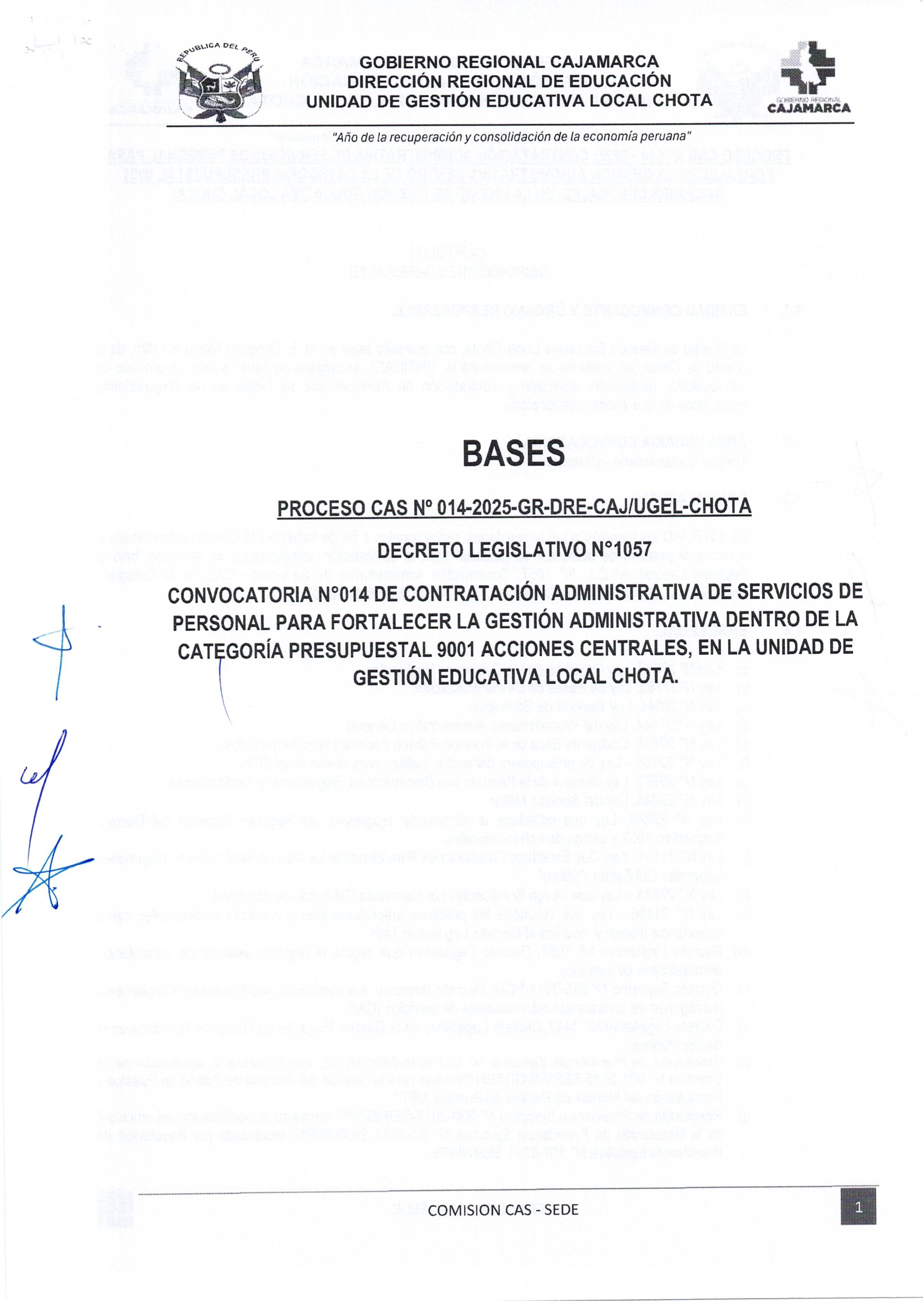 PROCESO CAS N° 012 - 2025: CONTRATACIÓN ADMINISTRATIVA DE SERVICIOS DE PERSONAL PARA FORTALECER LA GESTIÓN ADMINISTRATIVA DENTRO DE LA CATEGORÍA PRESUPUESTAL 9001 ACCIONES CENTRALES, EN LA UNIDAD DE GESTIÓN EDUCATIVA LOCAL CHOTA.