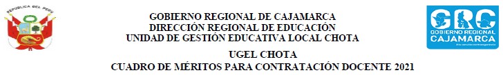 Cuadro de méritos SEGÚN PRUEBA ÚNICA NACIONAL (PUN) de la contratación docente Nivel Inicial - 2021 de la Unidad de Gestión Educativa Local Chota.
